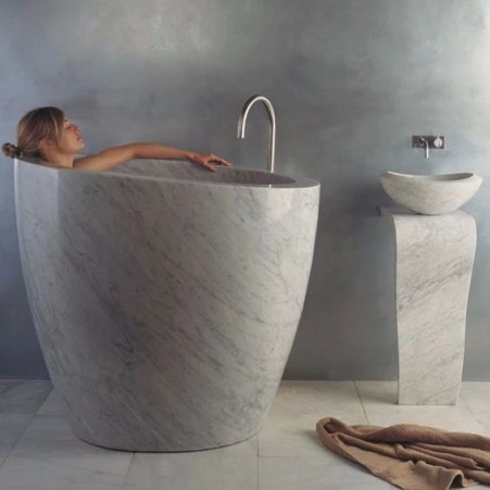 We talked about a soaking tub made out of Carra Marble. But you can also have your bathtub made out of the same material. This marble comes from Italy and has historic roots attached to it. It's also one of the most desirable stones in the world. So, is there any doubt as to why you shouldn't have a bathtub made out of Carrara Marble? Pure elegance and class are what Carrara Marble is. You will in lover with the beauty of the soft gray lines on its outer surface. A bathtub made out of it is a treasure.