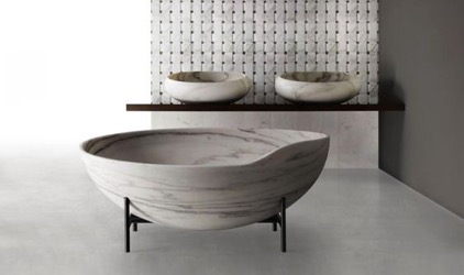 Designed by ace architect Naghi Habib, Level 45 marble bathtub is ideal for large bathroom owners. It has a unique sweep shape which is quite unique and sole. Its glossy surface looks refined and pleasing touch and feel. When water fills inside, it looks more attractive and revitalizing. It is a perfect deal for a bathroom to provide sophisticated look with style.