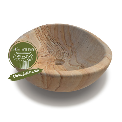 This beautiful sandstone bowl sink boasts elegant veining spans on the surface. The bowl-shaped river wave pattern on the stone sink gives a distinctive touch to the basin. This natural stone basin is not only beautiful but durable as well.