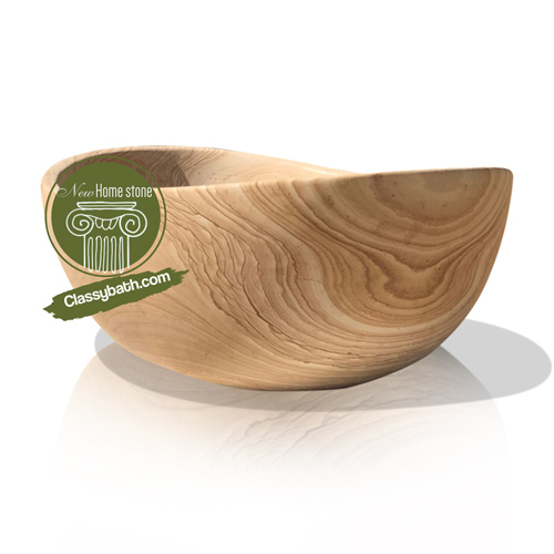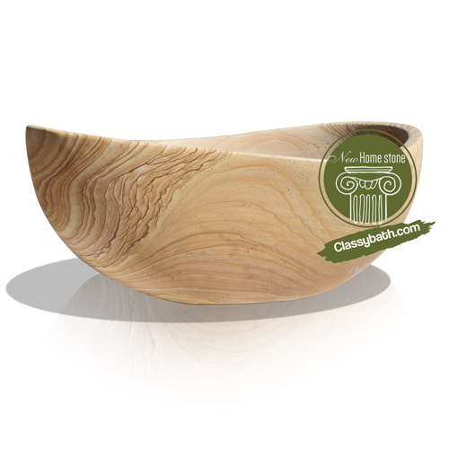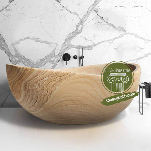 Rugged and robust, yet also clean and soothing, sandstone is an ideal material for a natural stone bathtub, with its stunning color patterns and veins that look like they came straight out of the sun washed desert. The special papillon style of this particular bathtub design is ingeniously asymmetrical, yet still perfectly balanced, with its two curved sides reflecting each other in harmony.
