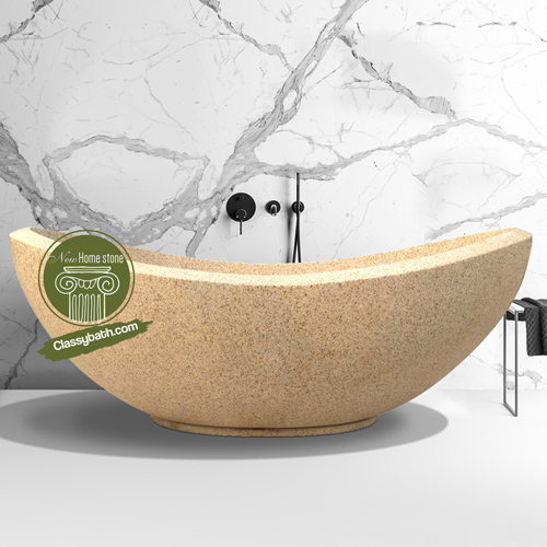 With a refreshingly different color and a unique take on a traditional design, the familiar is pushed into the innovative with just a few small upgrades with this yellow granite bathtub. It has a pleasantly grainy texture, with its spotted patterns looking both earthy and polished clean, at the same time.