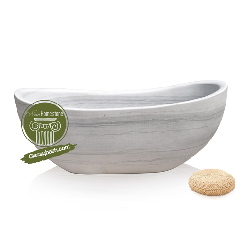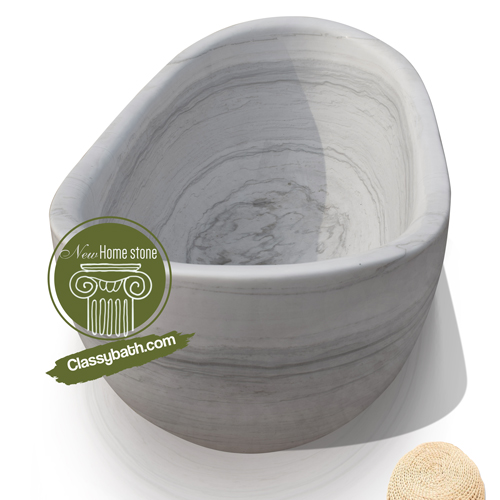 The bathtub’s gracefully curved rim provides a beautiful shape that is ideal for maximum comfort, and its natural white marble material boasts parallel veins of stunning coloration for a classic, iconic marble aesthetic. The marble is hand-carved to order, as all Marblebee products are, from a solid block of white Masha marble, and the tub’s freestanding design allows it to be placed anywhere, free from the constraints of a wall or of difficult internal installation.