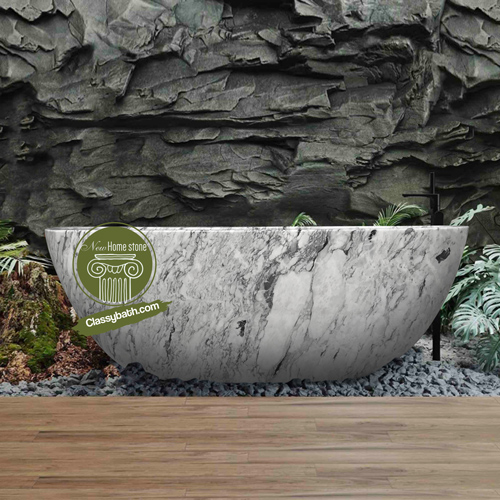 The color scheme of the tub’s natural Italian Carrara marble is vibrant and engaging, even as it sticks to a narrow spectrum of whites, blacks, and greys, which allows it to be placed among many different color schemes without clashing or being distracting. The modern oval design is precisely carved of Carrara marble, with contemporary techniques for a striking final shape combining a bowl with straight edges. For more Customized Marble Bathtub please contact us by email.