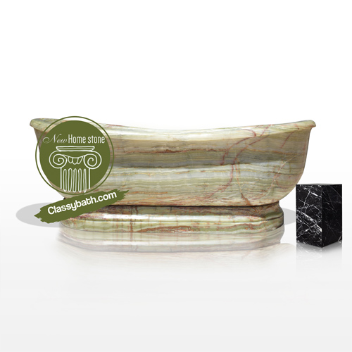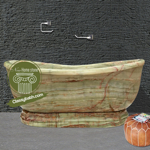 The stone bathtub is carved into a cozy double slipper structure, with the two far ends curving slightly upwards in a wing formation, making it perfect for easing your head back and putting your feet up during a hot bath at the end of the day. The slightly translucent green onyx gives the tub an ethereal, surreal glimmer: this luxury tub delivers the utmost pinnacle of beauty and class. For more Customized Stone Bathtub please contact us by email.