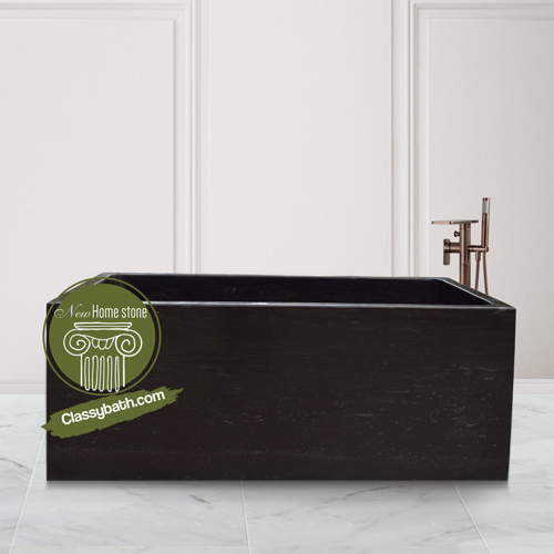 This gorgeous rectangular modern black limestone bath boasts tiny white speckles, offering a comforting and charming feel to a bathroom. It appears super luxurious and also offers exquisite touch to any bathroom interior. Made from limestone, the stunning black You will love the black bathtub has a relaxing shape from within. Soaking in this rectangular bathtub will be no less than a spa-like experience. The best part is that you get it in customized depth and size.